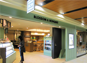 「BLOSSOM & BOUQUET」で挽きたての香り豊かなブレンドコーヒーや無農薬レタスなど素材にこだわったサンドイッチを片手に、くつろぎのお時間をお過ごしください。